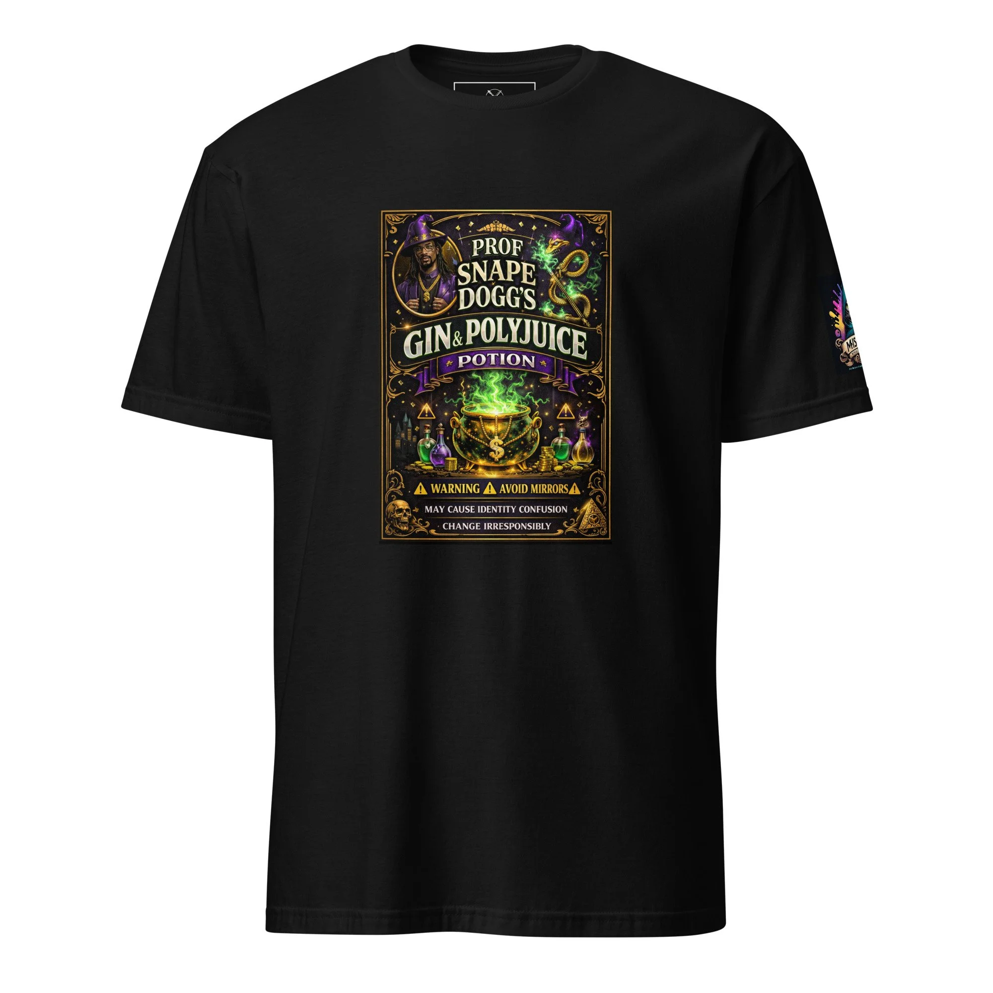 “Gin & Polyjuice Potion” reimagines a legendary transformation brew as a high-end, slightly dangerous indulgence. With ornate detailing, rich colours, and a premium label aesthetic, this design feels like it belongs on the shelf of a very exclusive (and very illegal) magical distillery.